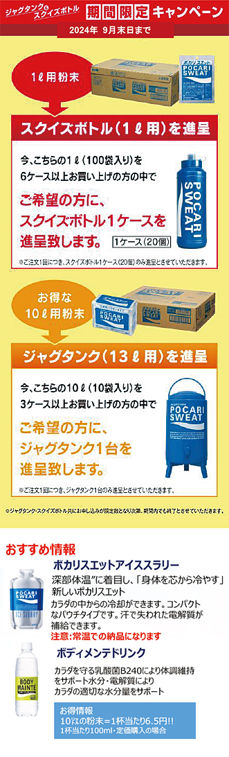 大塚製薬商品特別斡旋販売企画を実施させて頂く事となりました。是非この機会にご利用下さいますよう、宜しくお願い致します。